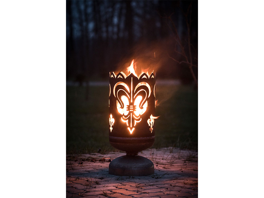Dieser beschauliche Feuerkorb im Stil der Lilie, hat 4 große und 4 kleine Lilien umlaufend eingearbeitet.