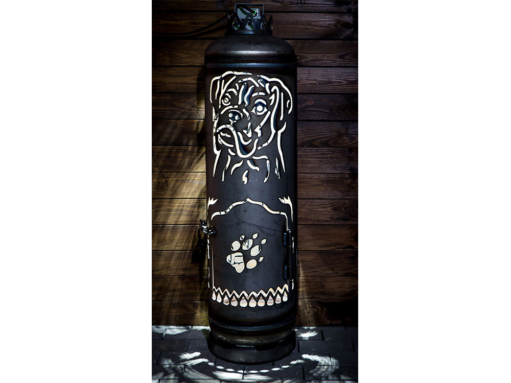 Sie sehen hier als Motiv dieses Terrassenofens einen Boxerkopf, auf der Rückseite einen kompletten Boxer, der Ihre Gartenbeleuchtung in ein wundervolles Flair taucht.