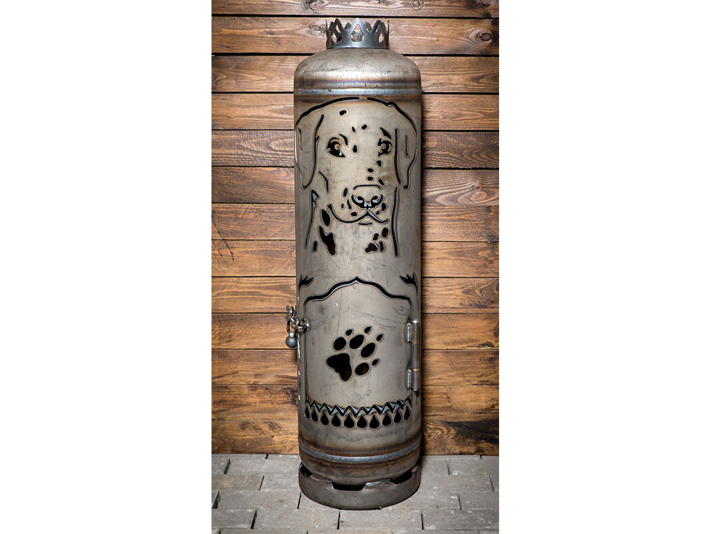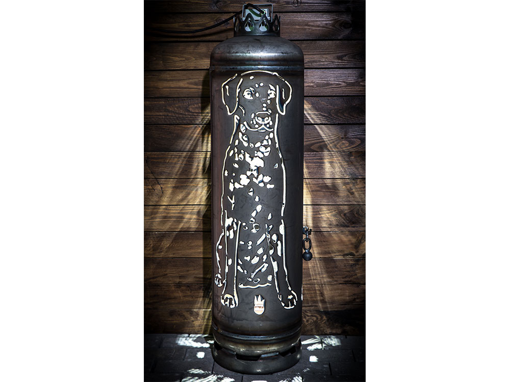 Das Motiv dieses Terrassenofens umfasst den Kopf des Dalmatiners auf der Vorderseite und auf der Rückseite das Gesamtmotiv des Vierbeiners. Dementsprechend einzigartig wird Ihre Gartenbeleuchtung!