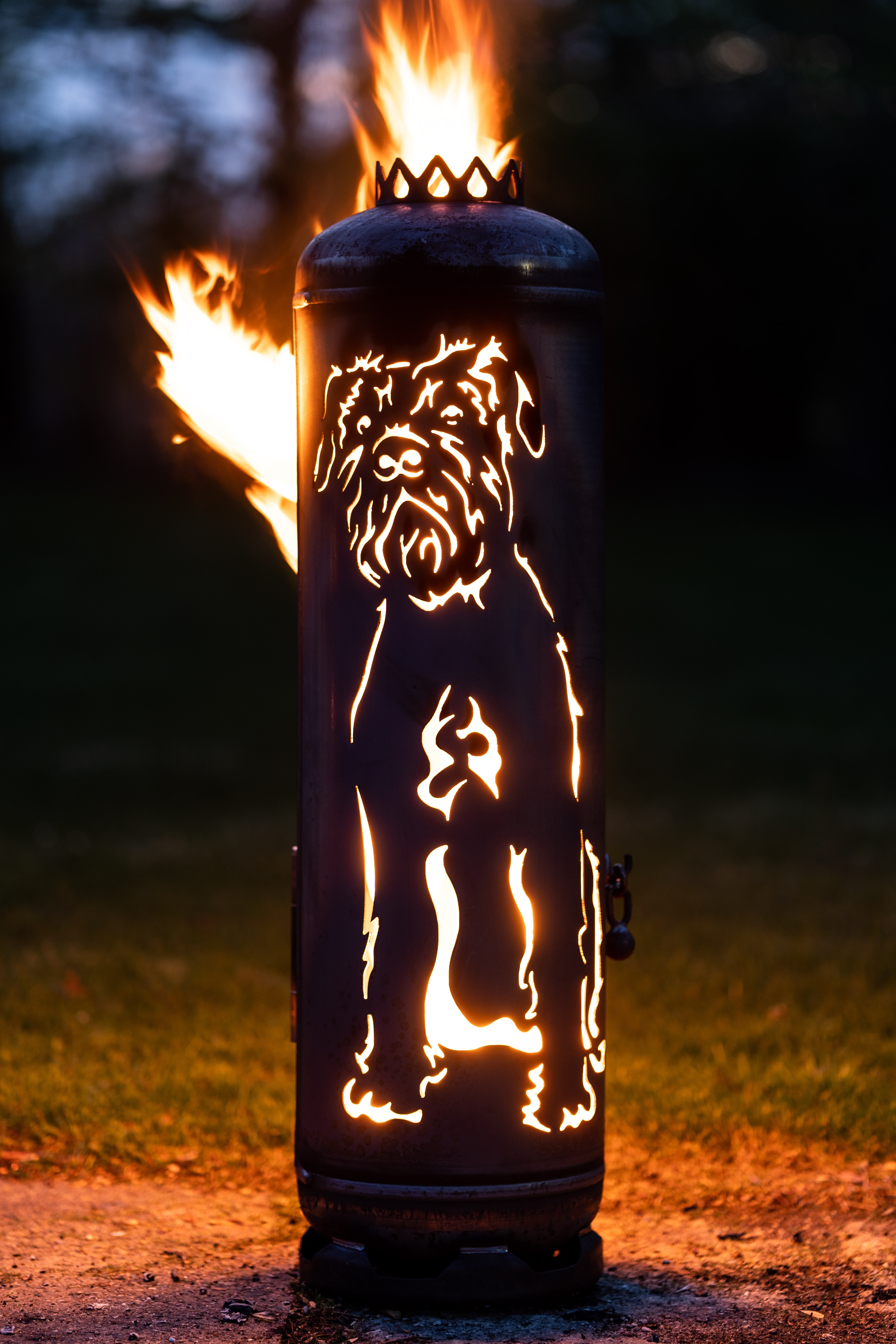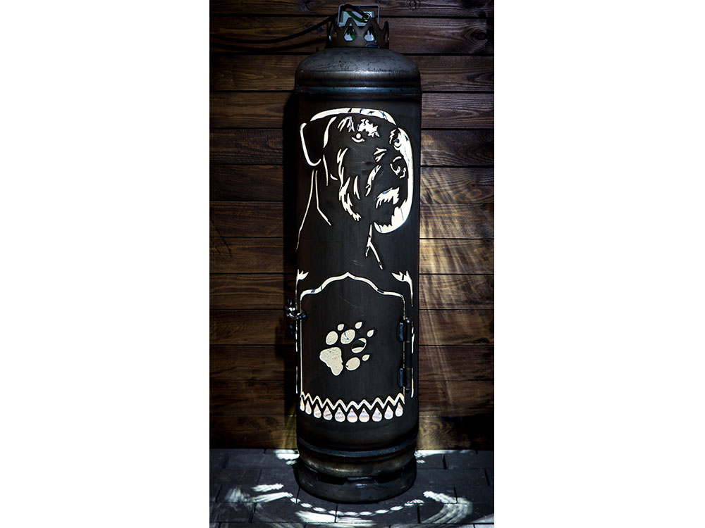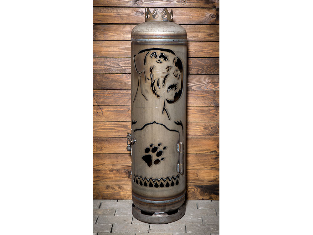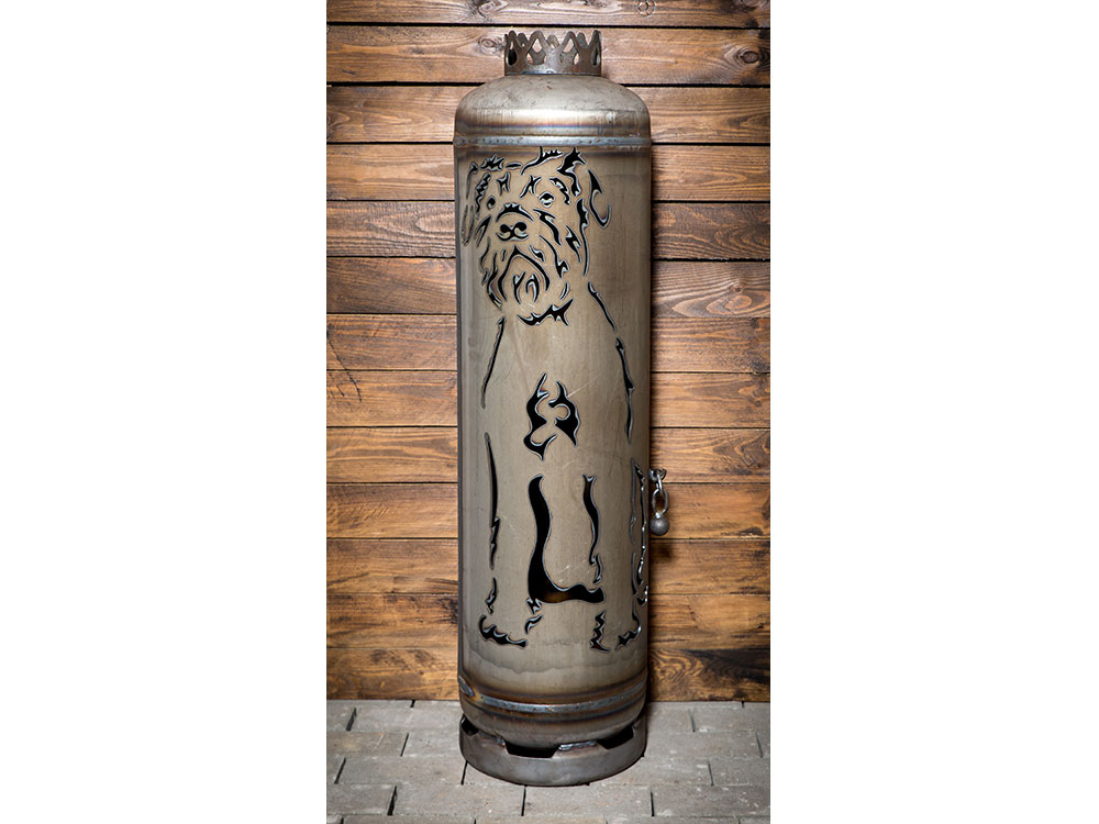 Dieses liebevoll gestaltete wie detailreiche Motiv auf unserem Terrassenofen bringt die Silhouette eines Riesenschnauzers zum Vorschein. Ein derartiger Terrassenofen verwandelt Ihre Gartenbeleuchtung in ein Ambiente, wie es schöner und individueller nicht sein könnte.