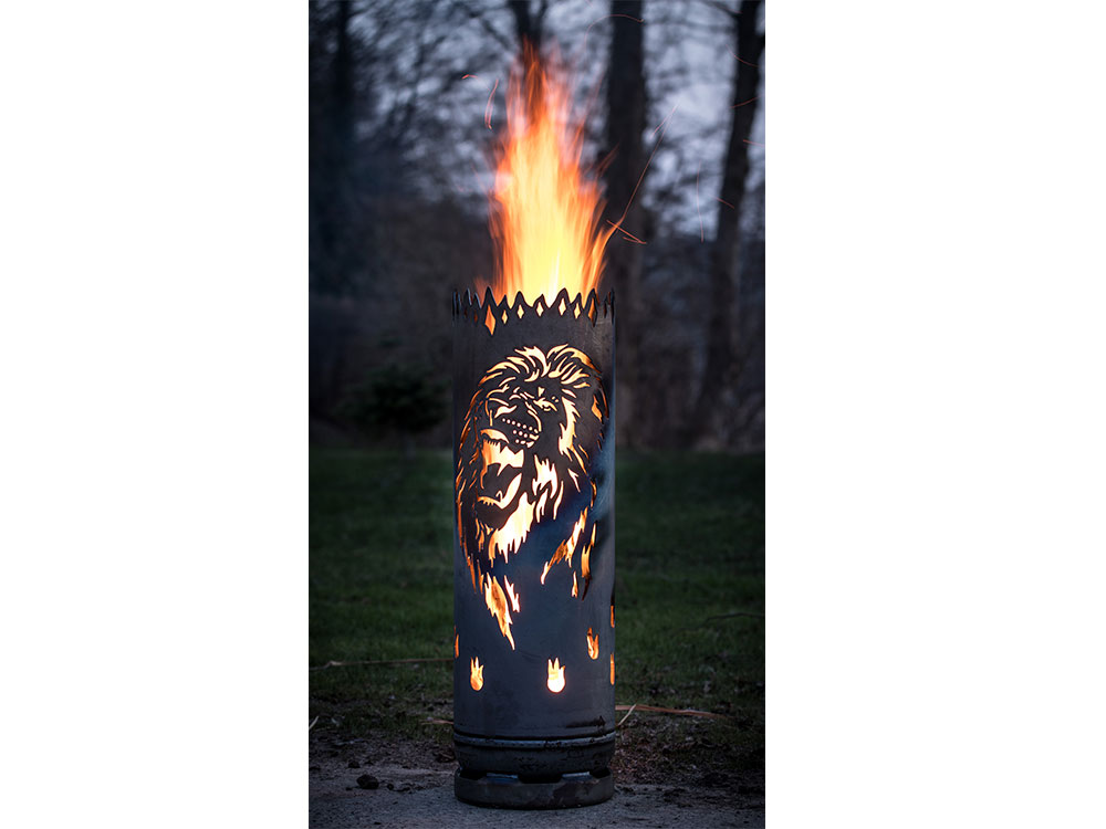 Zum Anzünden des Gartenofens legen Sie einfach kleine, leicht entzündliche Holzstücke hinein und zünden anschließend das Holz mit Hilfe eines Grillanzünders an. Nachdem das Objekt genügend Brennstärke erlangt hat, werfen Sie ganz im Stil einer Feuertonne das Holz durch die obere Öffnung der Feuersäule.