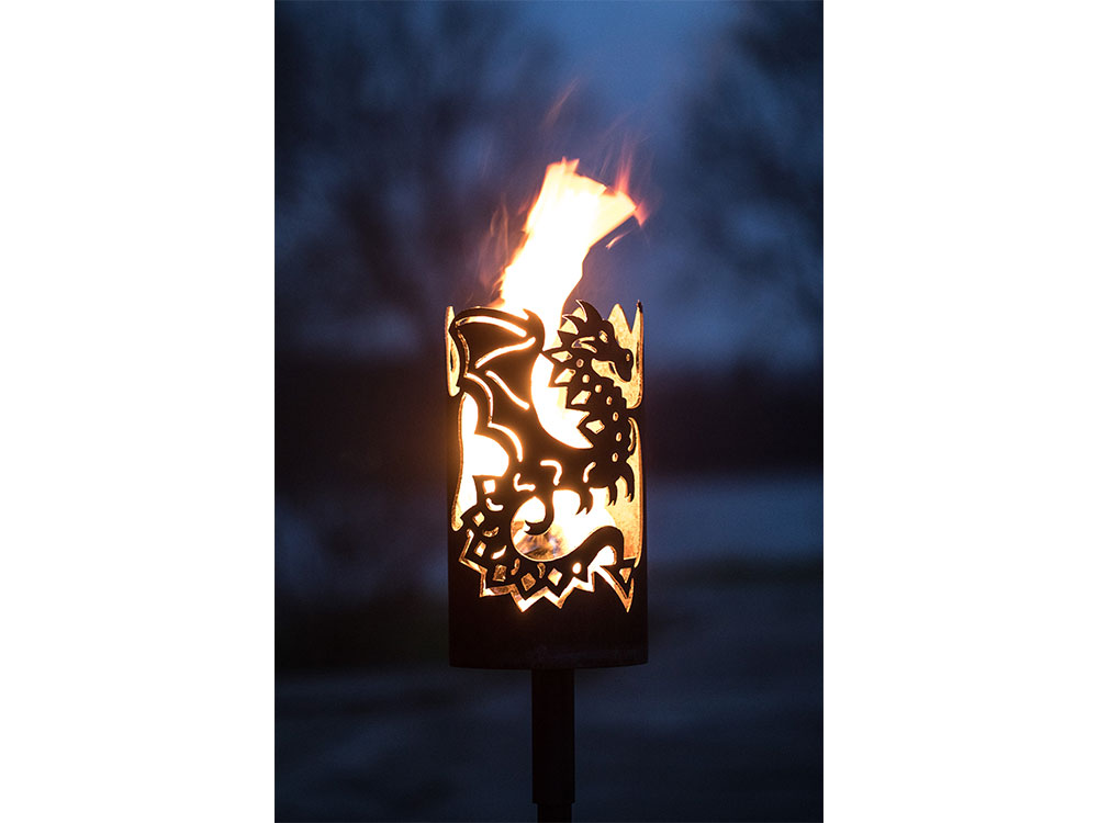 Mit dieser formschönen Motivfackel "Drache" entzünden Sie ein Gartenfeuer, welches Ihrer Umgebung garantiert nicht verborgen bleiben wird!