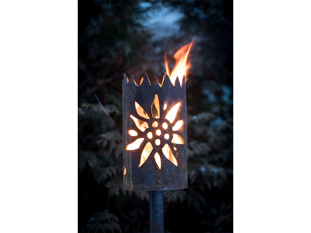 Mit dieser formschönen Motivfackel "Edelweiß" entzünden Sie ein Gartenfeuer, welches Ihrer Umgebung garantiert nicht verborgen bleiben wird!