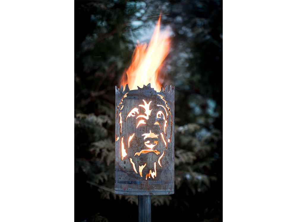 Gartenfackel groß Irischer Wolfshund - inkl. Fackelstiel 118 cm angespitzt und 1 x Brennmaterial
