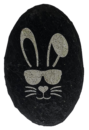 Sie erhalten 4 Schiefer-Ostereier von ca. 8 x 6 cm mit einem Hasengesicht. Die Kanten des Schiefers sind behauen.