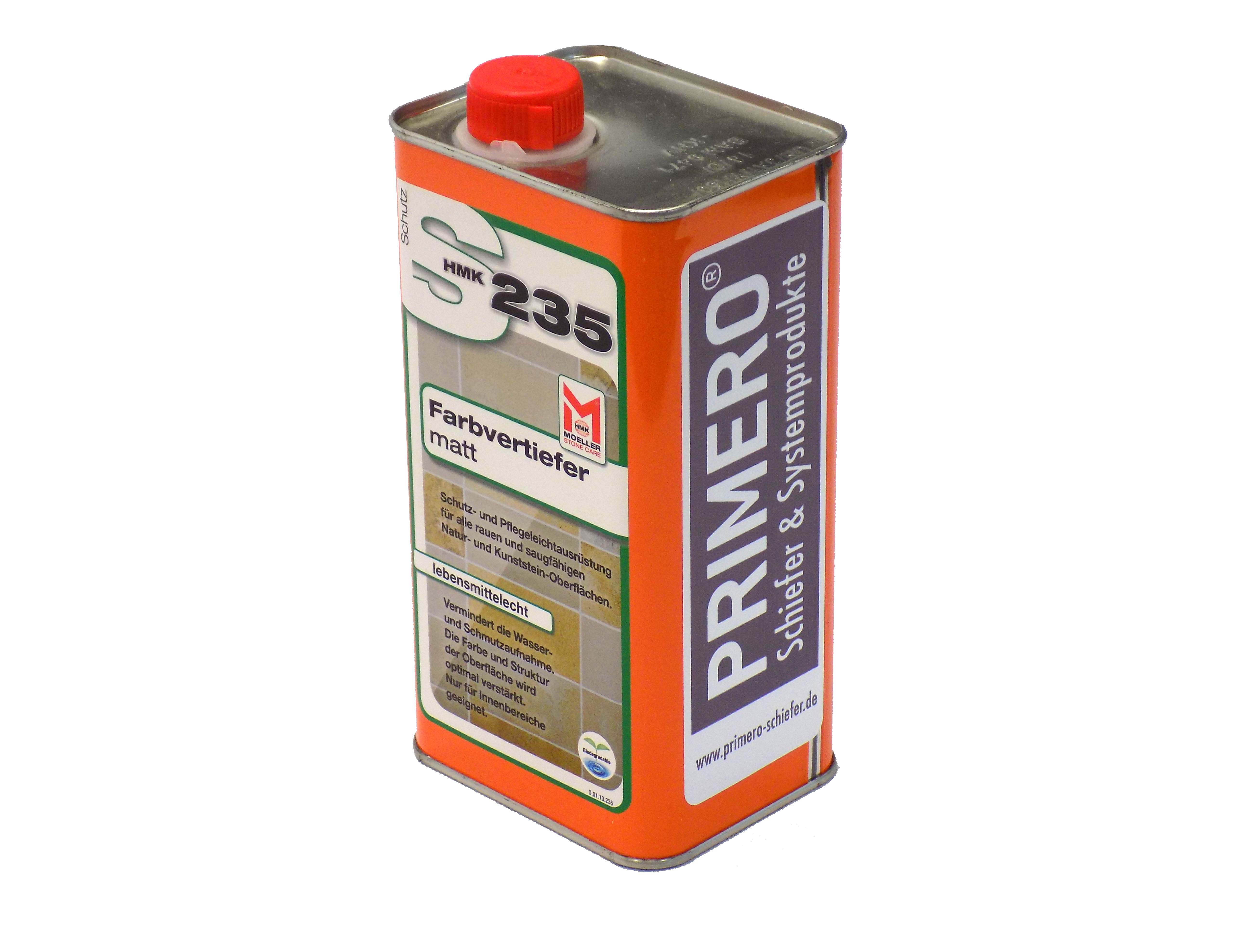 Primero S235 Farbvertiefer ist ein gebrauchsfertiger Oberflächenschutz. Er vermindert das Eindringen von Wasser und Schmutz in großgeschliffene, gebürstete, sandgestrahlte, geflammte oder spaltraue Natursteinoberflächen (Weich- und Hartgesteine), Agglo-Marm für , Betonwerkstein und Terrazzo im Innenbereich. Die Farbe und Struktur der Oberfläche wird optimal zur Geltung gebracht. Der zurückbleibende Wirkstoff ist gesundheitlich unbedenklich. Zur gründlichen Vorreinigung eignet sich R155 Grundreiniger - säurefrei. Für die spätere Dauerpflege empfehlen wir P324 Edel-Steinseife (Naturprodukt).