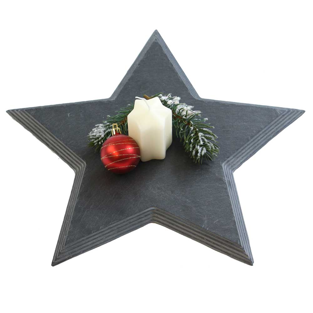 Mit dem Primero Schieferstern erhalten Sie einen Naturstein, der Ihnen über Jahre Freude bereiten kann. Ein Unikat, aufwendig produziert und von besonderem Design. Die stufenförmige Randbearbeitung verleiht dem Produkt seinen einzigartigen Charakter und die spaltraue Oberfläche seine Individualität.