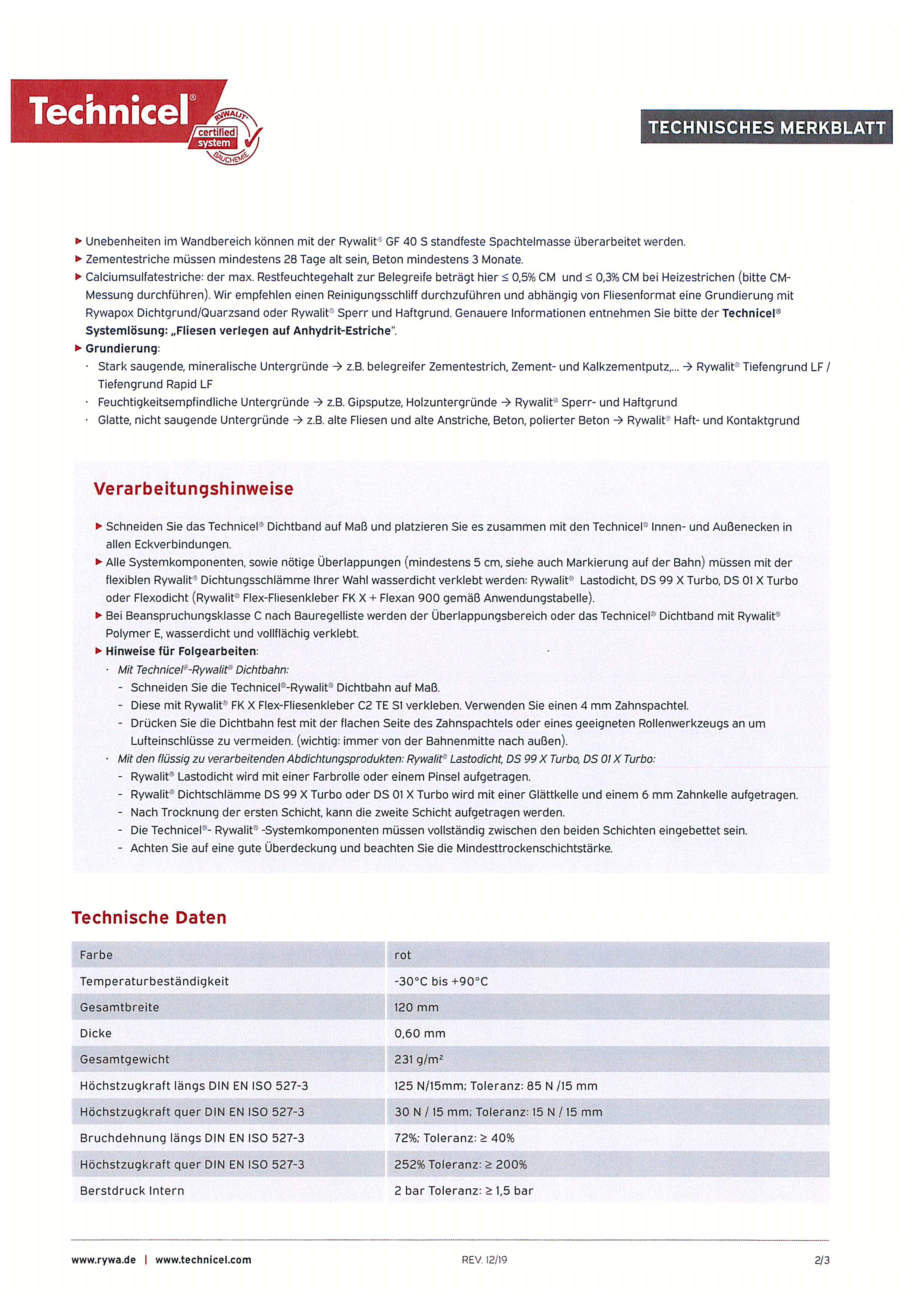 • Mit Technicel®-Rywalit® Dichtbahn: