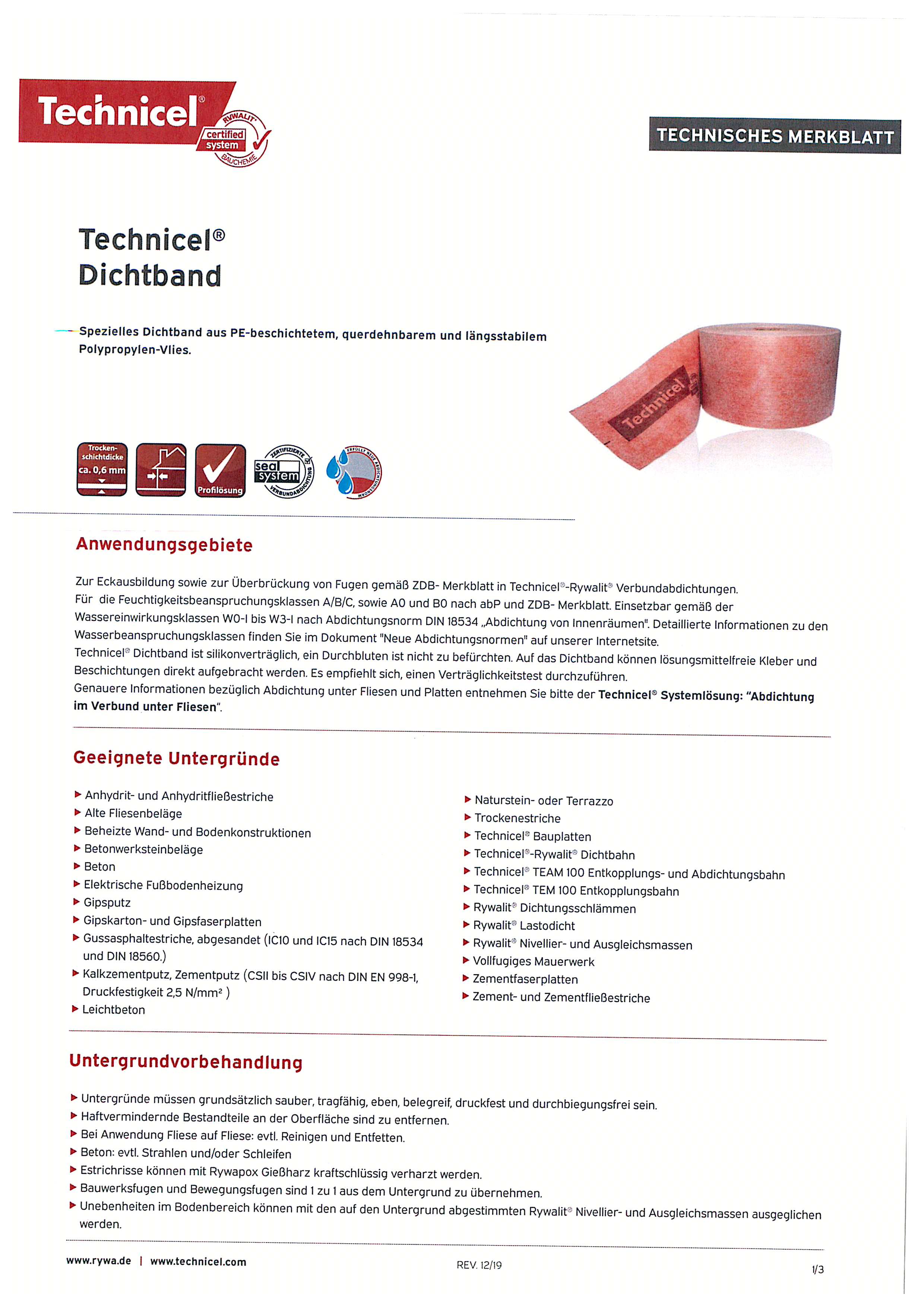 Merkblatt. Einsetzbar gemäß der Wassereinwirkungsklassen W0-I bis W3-I