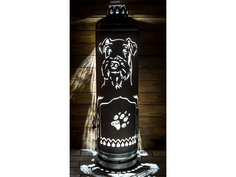 Der Terrassenofen ist eine für Airedale-Terrier-Halter liebevoll geschaffene Feuerstelle. Ihnen bietet sich eine tolle Silhouette Ihres Lieblings beim Betrieb während aufkommender Dunkelheit an. Die Silhouette, welche sich Ihnen dann zeigt (wenn Sie Ihre Feuerstelle bei Dunkelheit brennen lassen) wertet Ihre Gartenbeleuchtung definitiv auf, wie es individueller nicht sein könnte.