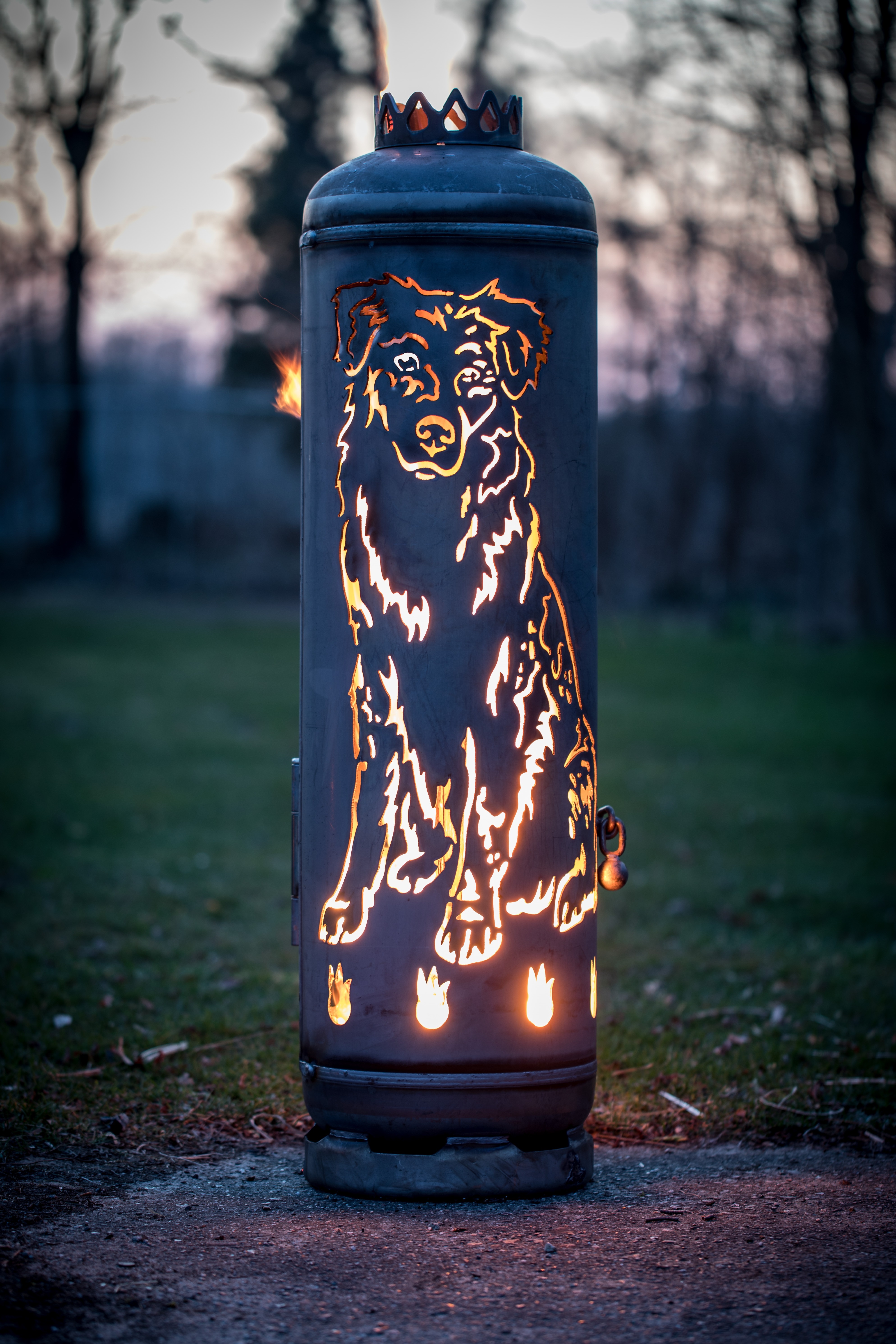Diese formschöne Feuerstelle mit einem Australian Shepherd lässt in Ihrem Garten ein Terrassenfeuer entstehen, welches auf staunende Blicke Ihrer Familie, Ihrer Freunde und Ihrer Gäste treffen wird.