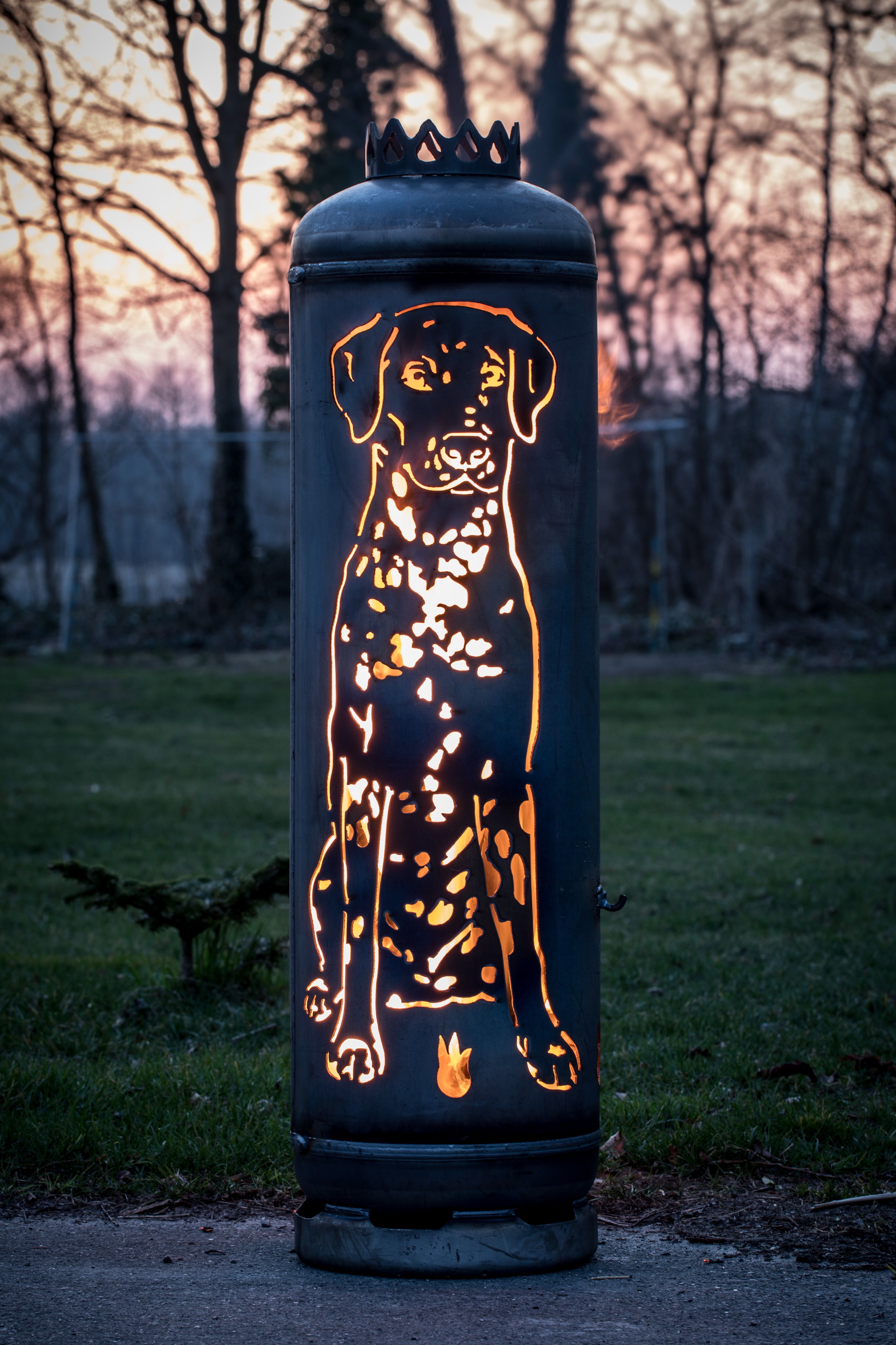 Bei Dunkelheit kommt das Motiv des Dalmatiners besonders gut zur Geltung, wenn Sie das Gartenfeuer entzünden. Beispiele der Silhouette können Sie auf den Bildern in der Galerie gut erkennen.